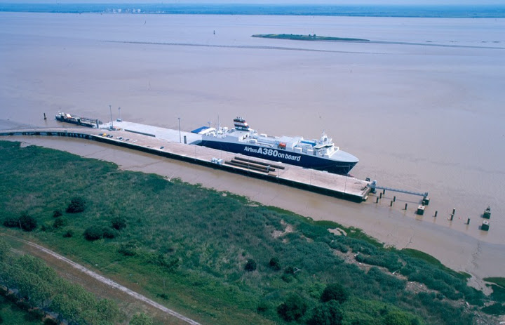 • Présence de la barge Breuil utilisée pour acheminer les éléments de l’Airbus A380 de Pauillac à Langon par voie fluviale.